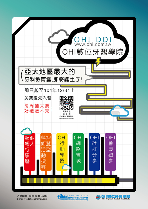 經過近三年的努力,這平台目前已進入完工與測試的階段,預估於105年1月將正式與各位見面,屆時大家無論是使用電腦、手機還是平版電腦…等行動裝置,都可透過網路連接到「OHI數位牙醫學院(www.ohi.com.tw)」的網站,找到您想要的資訊。